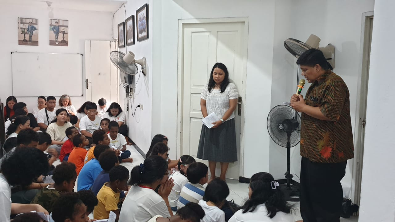 Acara kebaktian ceria dipimpin oleh Kakak-kakak Guru Sekolah Minggu, yaitu Merry Siagian, Mutiara Doloksaribu dan Lilian Simarmata. Doa pembukaan oleh St Ramos Lumban Gaol (Ketua Dewan Koinonia) dan Doa Syafaat dipimpin oleh St Oliver Sianturi. Acara Kebaktian dimeriahkan dengan Vocal Group dari Panti Asuhan Ester dan Sekolah Minggu HKBP Cawang.