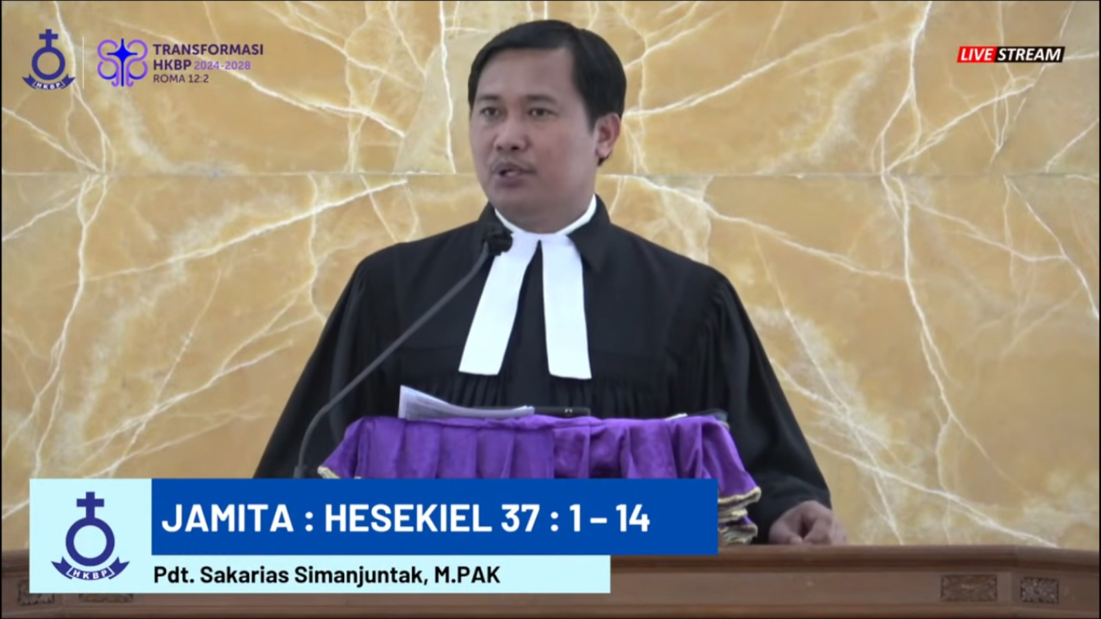 Bertindak sebagai pengkhotbah, Pdt. Sakarias Simanjuntak, M.PAK., dengan liturgis St. Ir. Sampe Tombang Simanjuntak, serta pembacaan warta jemaat oleh St. Dr. Ir. Lukas B. Sihombing, MT.