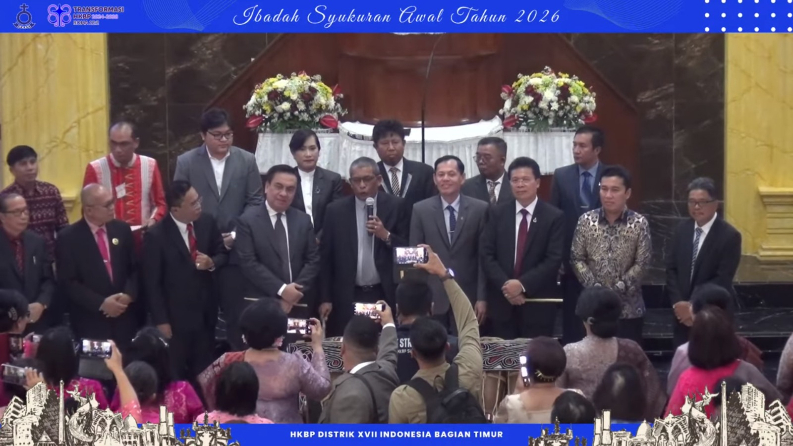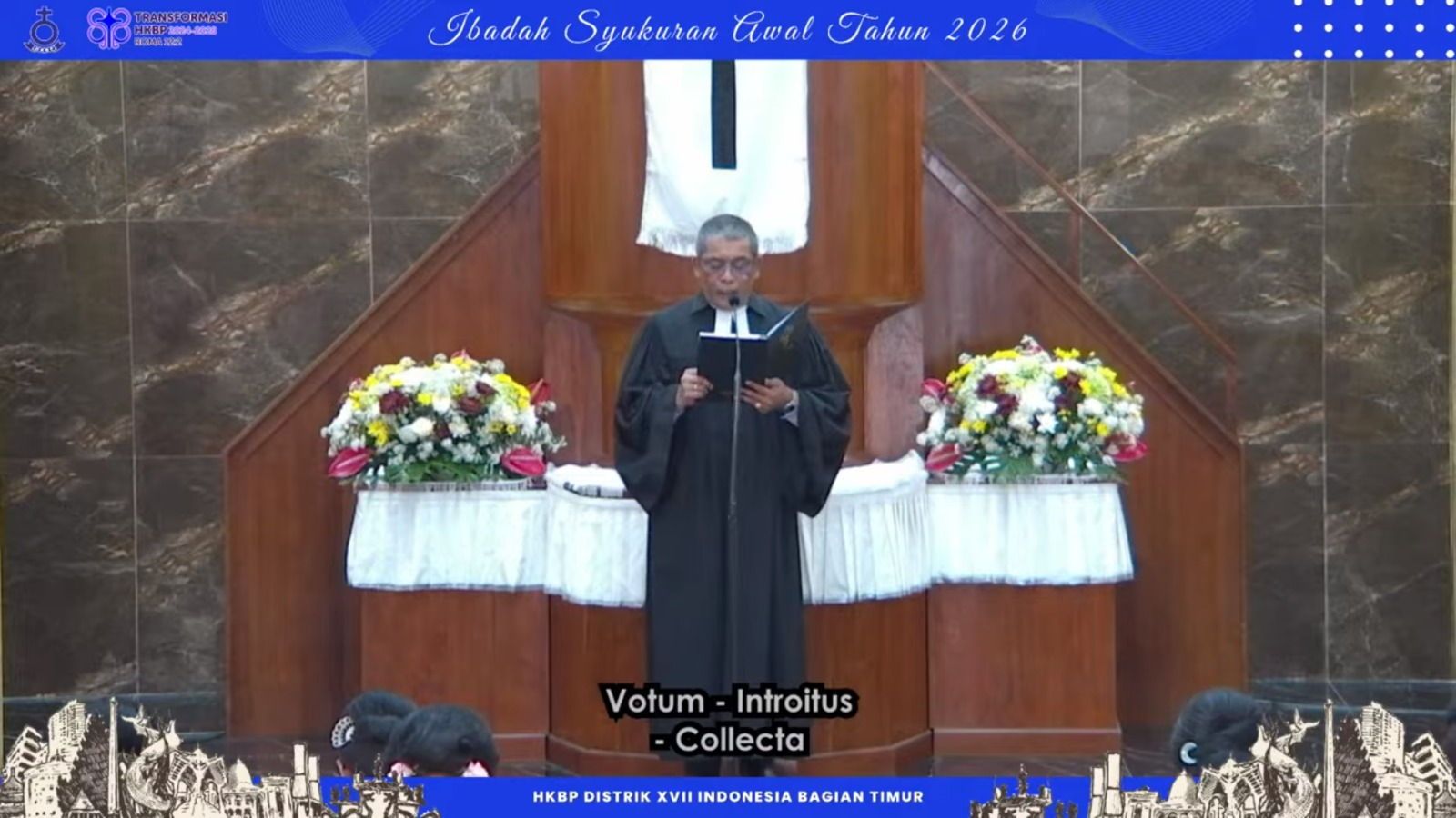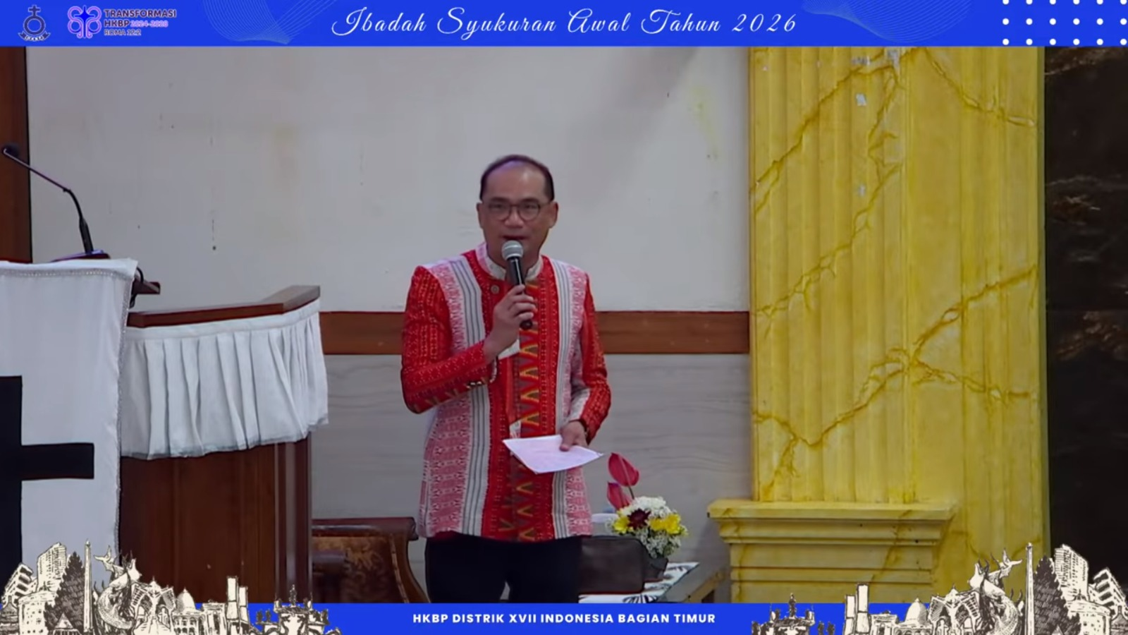 Ibadah dilaksanakan dalam semangat syukur memasuki tahun pelayanan 2026 dengan mengusung tema Tahun Transformasi: “Pengajaran Iman di Tengah Keluarga” (Ulangan 6:4–9). Ibadah dipimpin oleh Ephorus HKBP Pdt. Dr. Victor Tinambunan, MST, bersama Praeses HKBP Distrik XVII–IBT Pdt. Samuel Christian Sitompul, M.Th., MM.