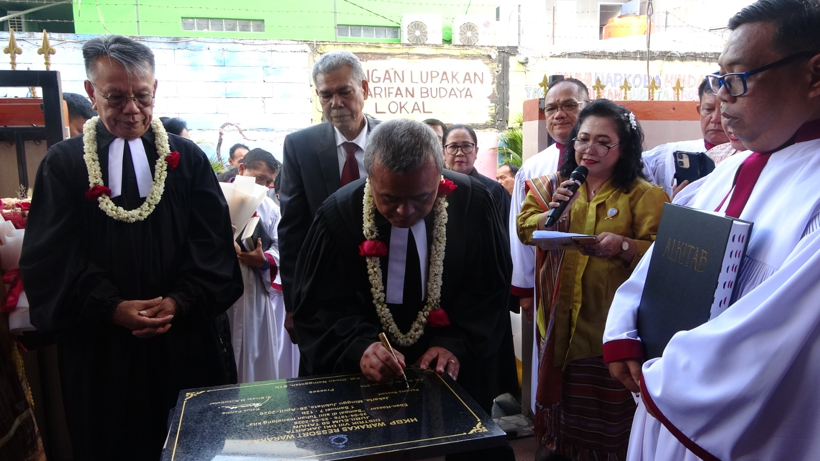 Pendatangan Prasasti oleh Praeses Di 50 Tahun HKBP Warakas.