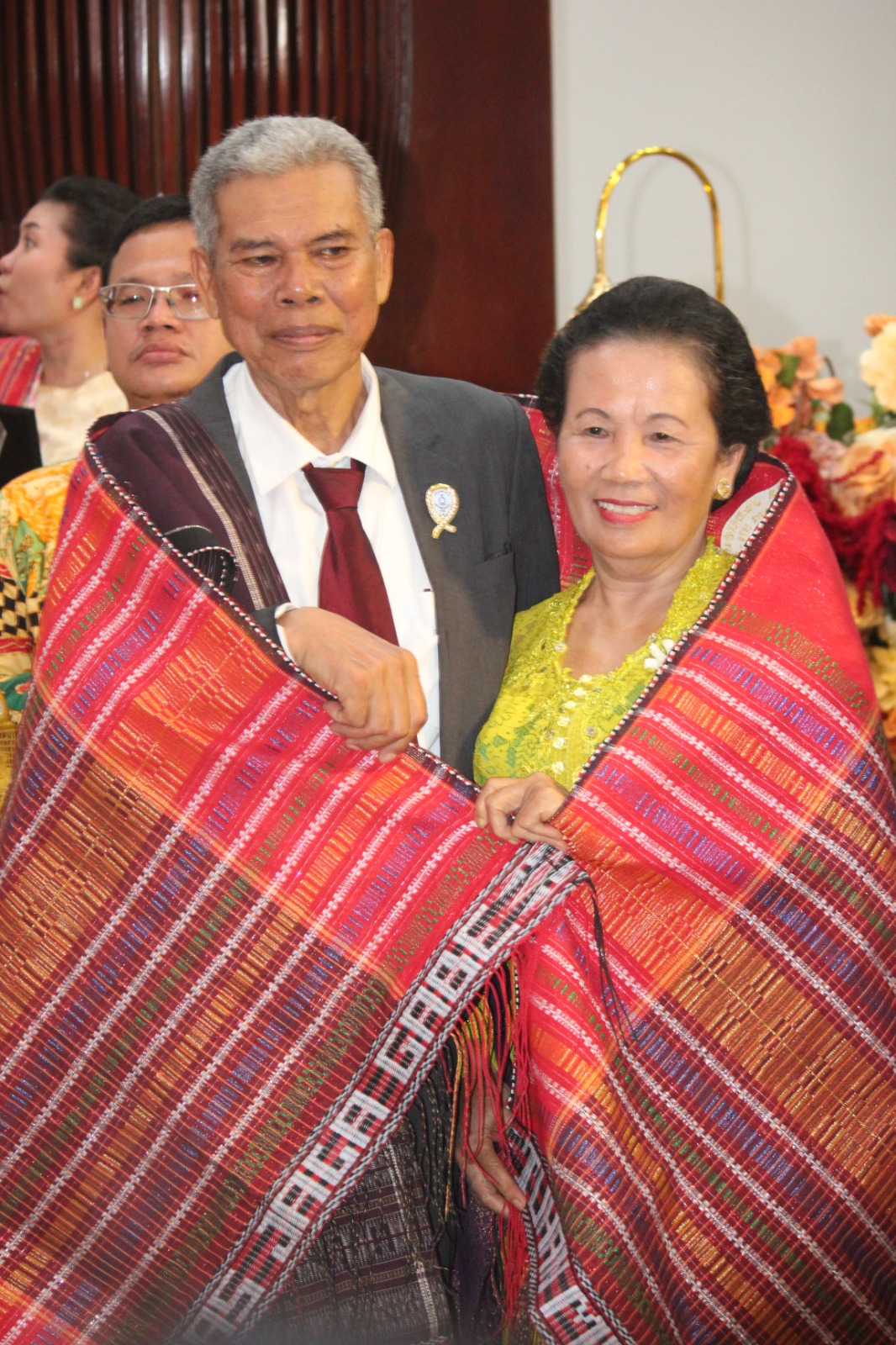 Pemberian ulos kepada keluarga pendeta yang pernah melayani di HKBP Warakas.