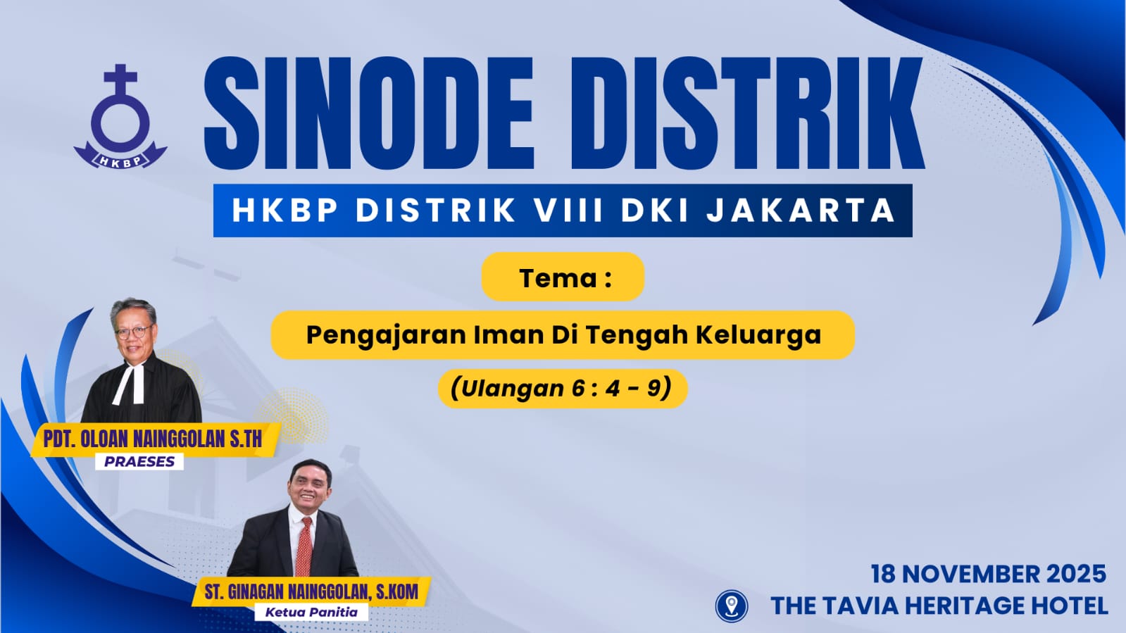 Praeses HKBP Distrik VIII DKI Jakarta, Pdt. Oloan Nainggolan, bersama para pelayan penuh waktu (pangula gok tiki) hadir memberikan penghiburan kepada keluarga yang ditinggalkan dalam sebuah ibadah penghiburan yang berlangsung di rumah duka HKBP Jakarta Kota bertempat di Gedung Sekolah Minggu.