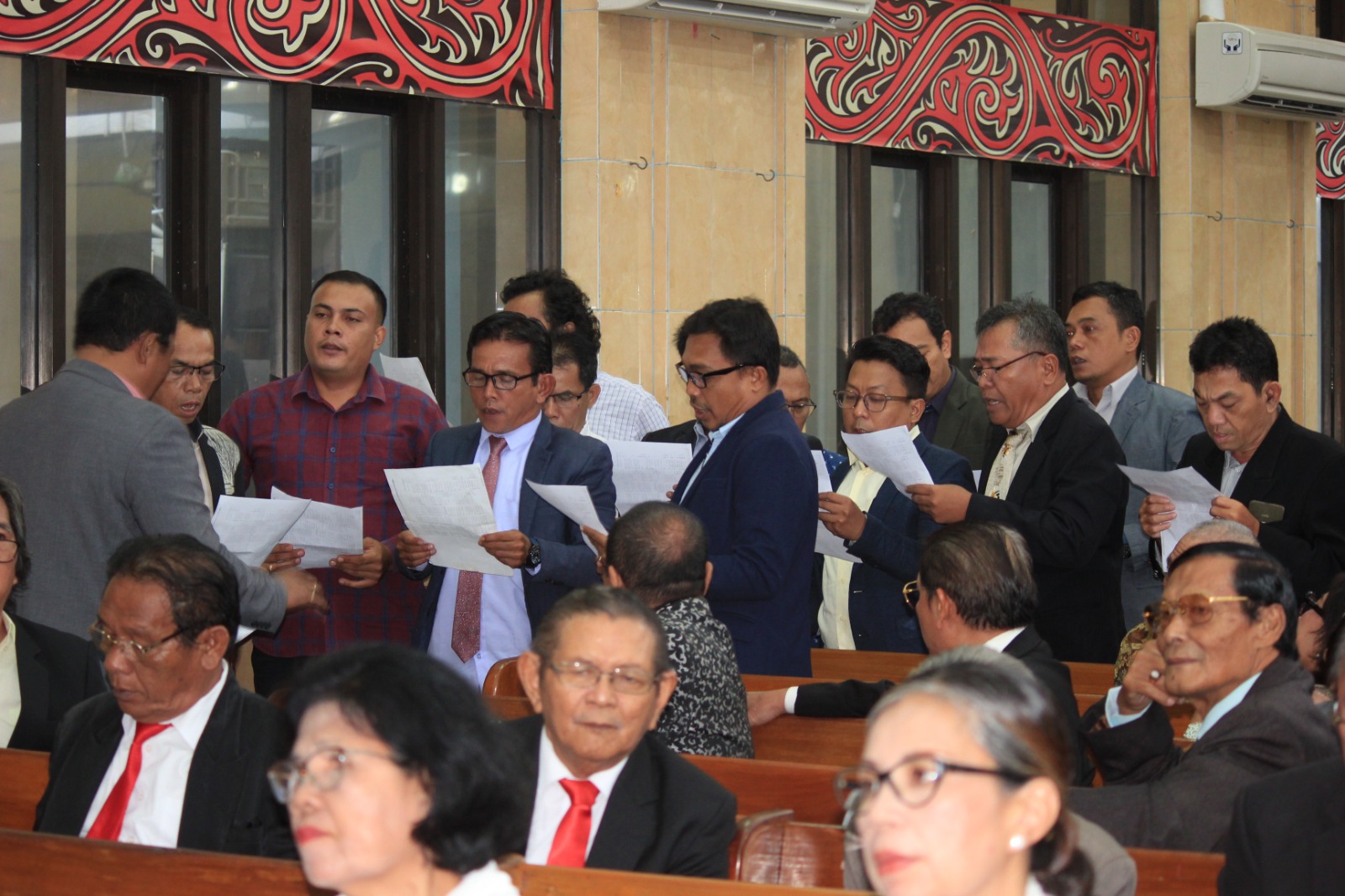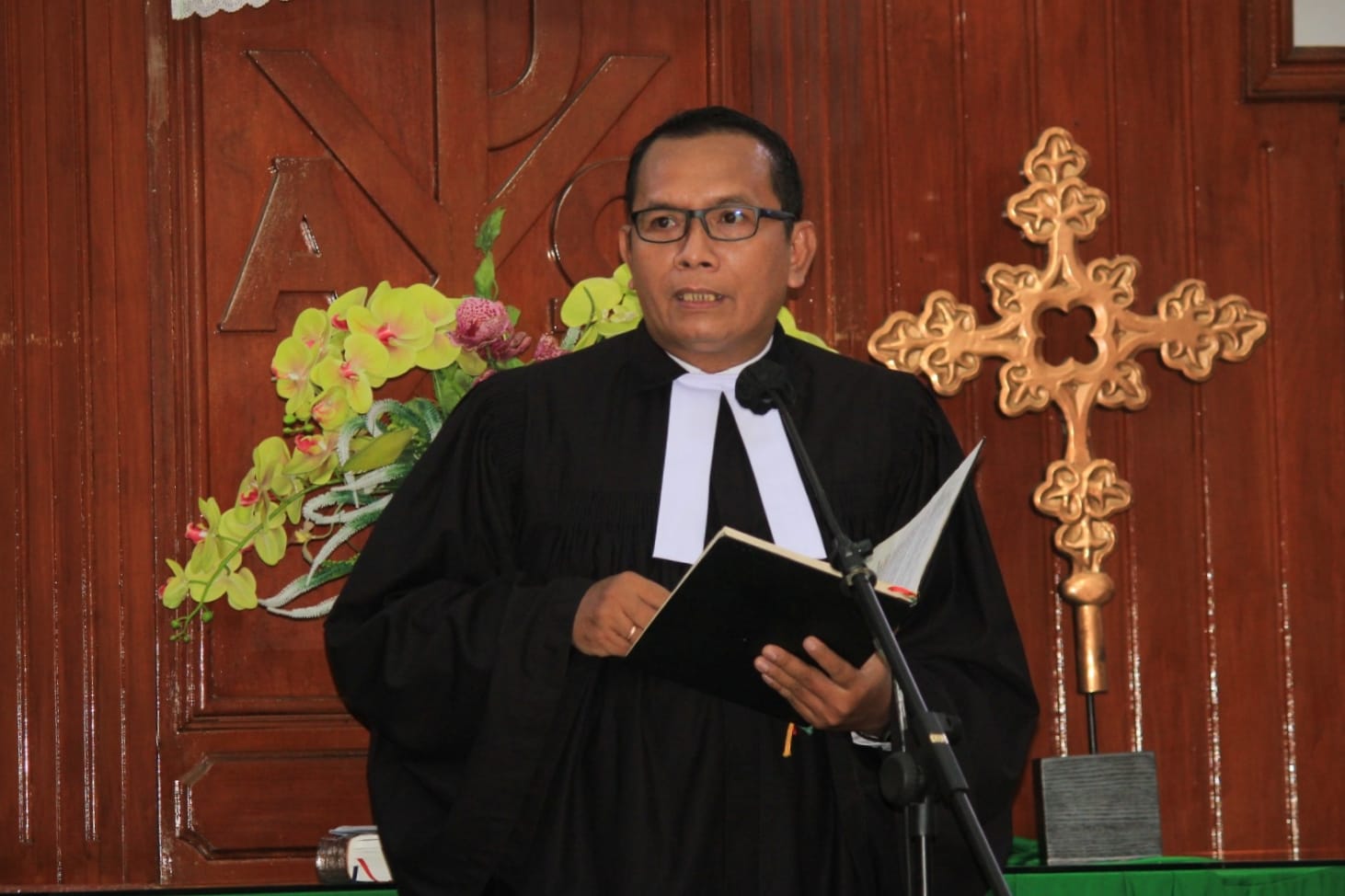 Para pendeta bersama parhalado dalam pelayanan ibadah Minggu (16/11/2025) di HKBP Resort Tanjung Priok, Jakarta Utara.