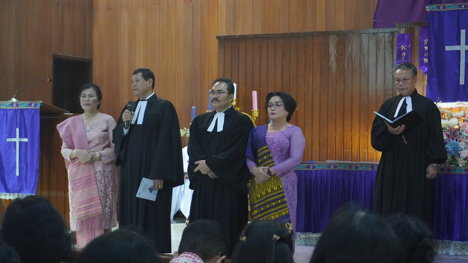 Dalam khotbahnya, Praeses Pdt. Oloan Nainggolan menegaskan makna panggilan untuk berjalan dalam terang Tuhan, sebagaimana disampaikan dalam Yesaya 2:1–5, dan mendorong seluruh jemaat untuk hidup dalam damai, kebenaran, serta kesetiaan kepada Allah.
