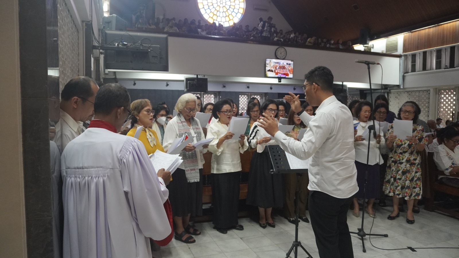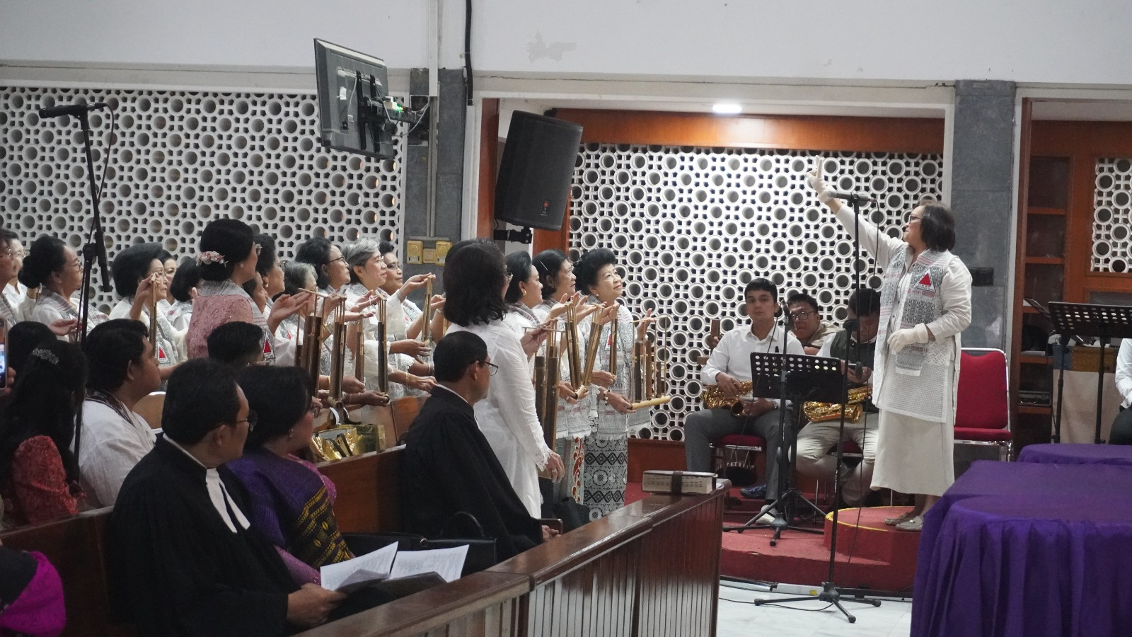 Ibadah diisi dengan Persembahyan Pujian dari Koor HKBP Ujung Menteng, Angklung Lansia HKBP Kebayoran Baru dan Koor Keluarga Parhalado.