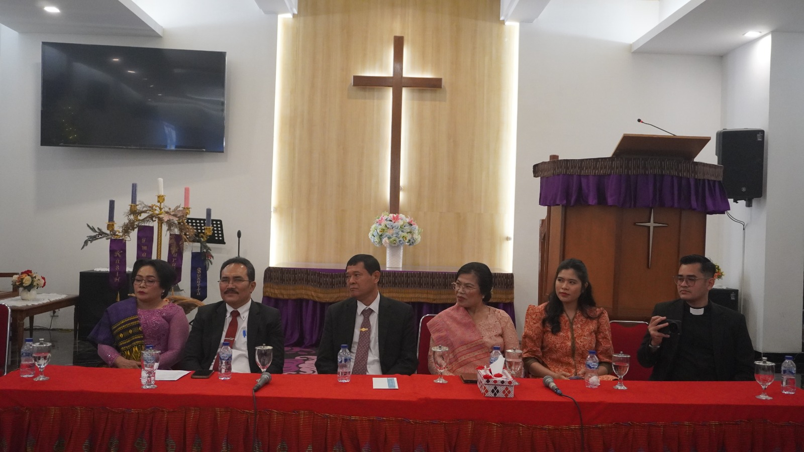 Usai ibadah, acara dilanjutkan dengan ramah tamah di Gedung Serbaguna.