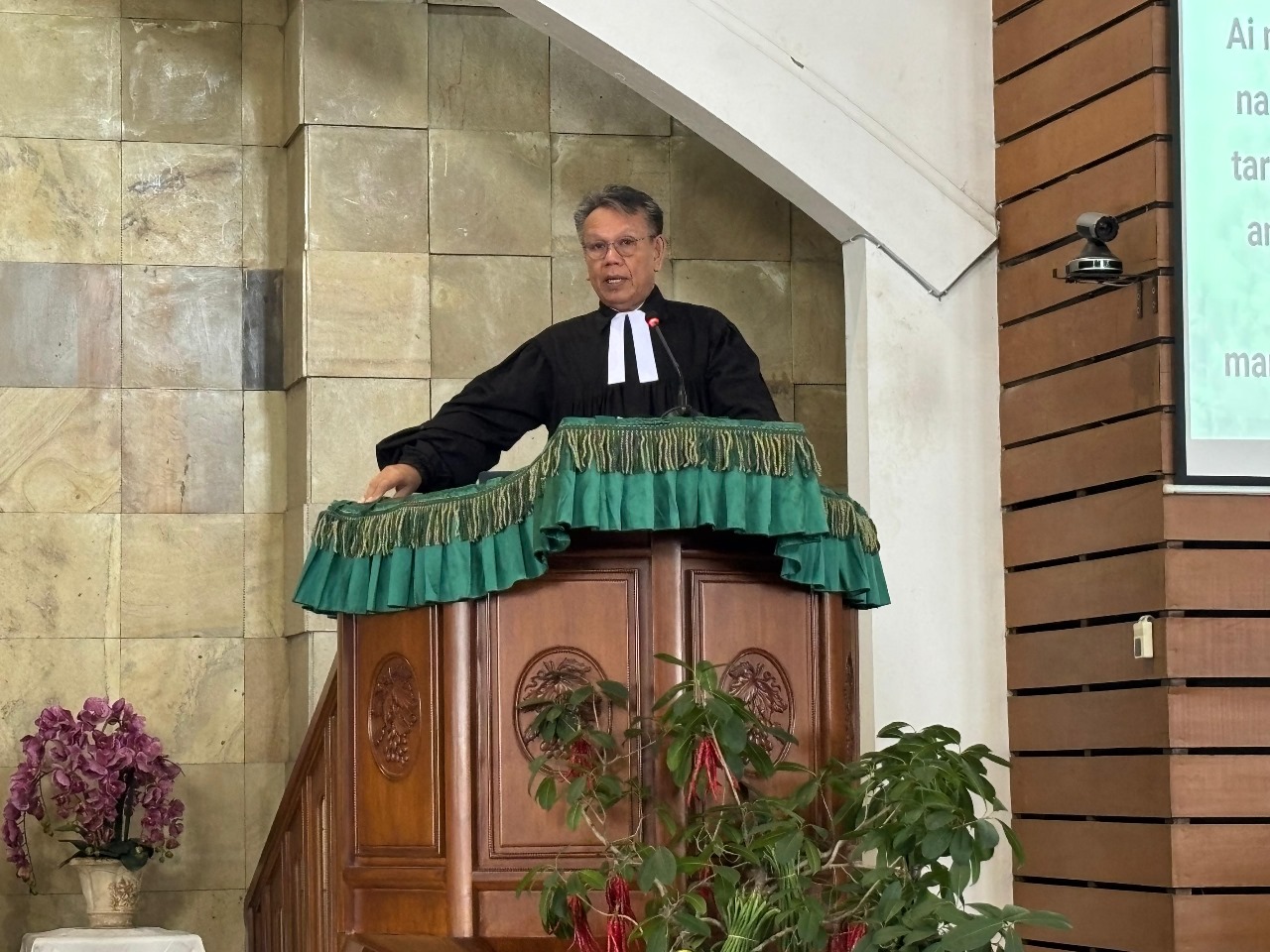 Pdt. Rijon Malcolm Siahaan, Pendeta HKBP Ressort Pasar Minggu, melayani sebagai Liturgis