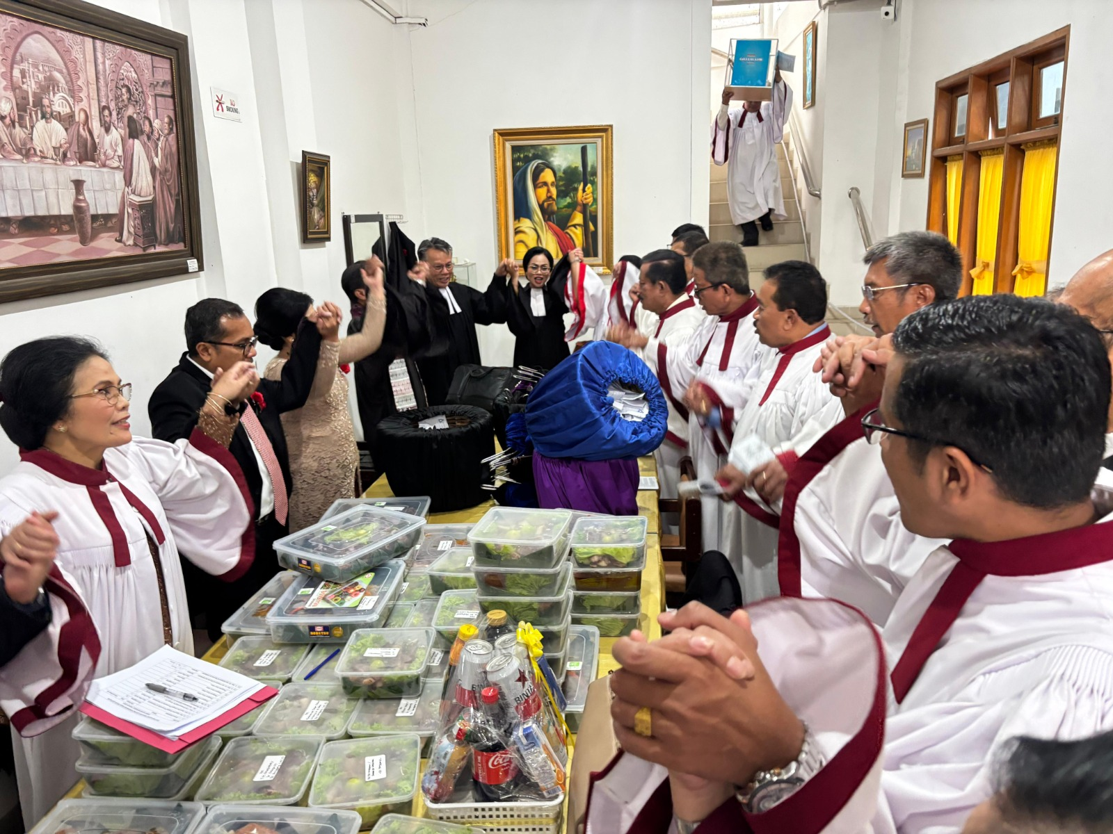 Praeses Pdt. Oloan Nainggolan didampingi Pdt. Rijon Malcolm Siahaan menyemangati panitia dan Parhalado HKBP Pasar Minggu