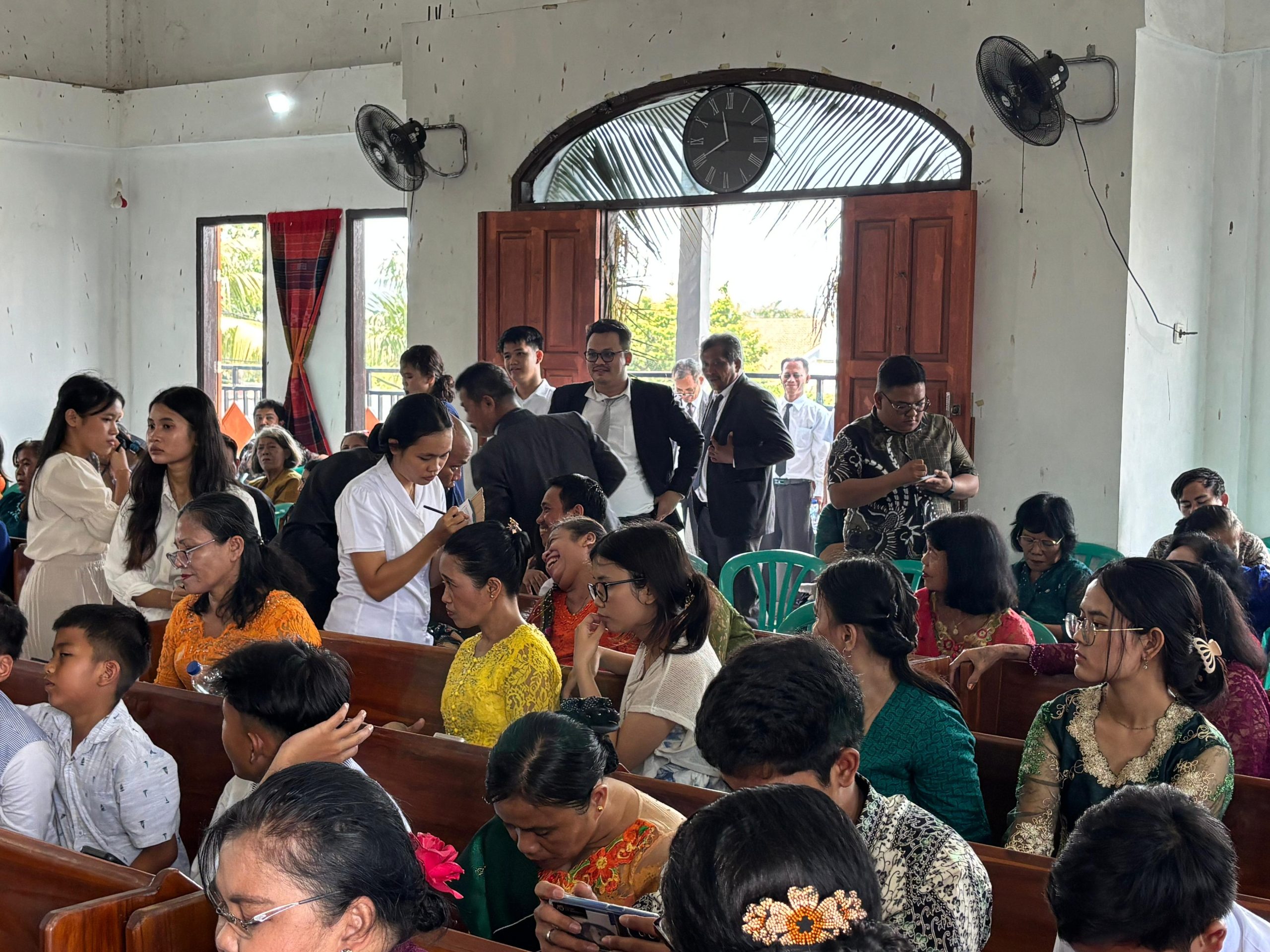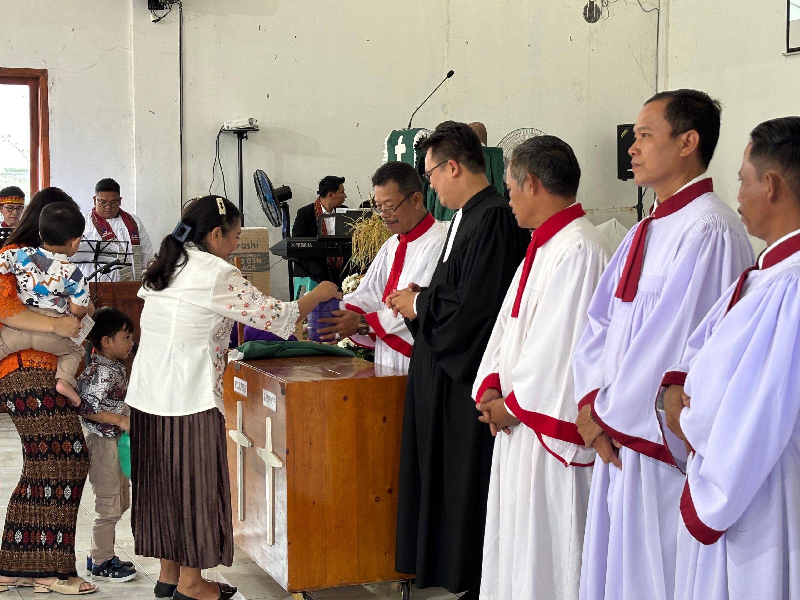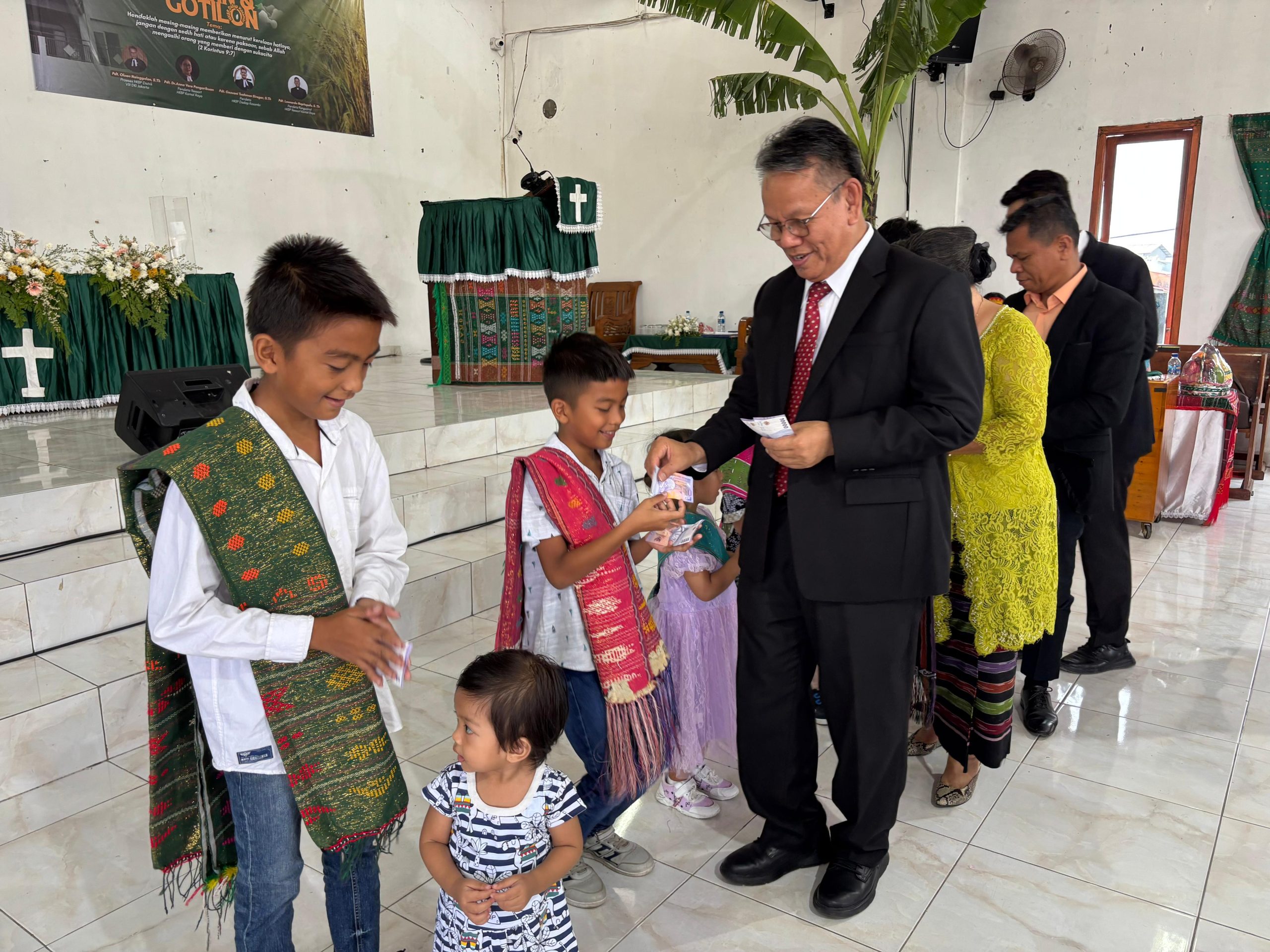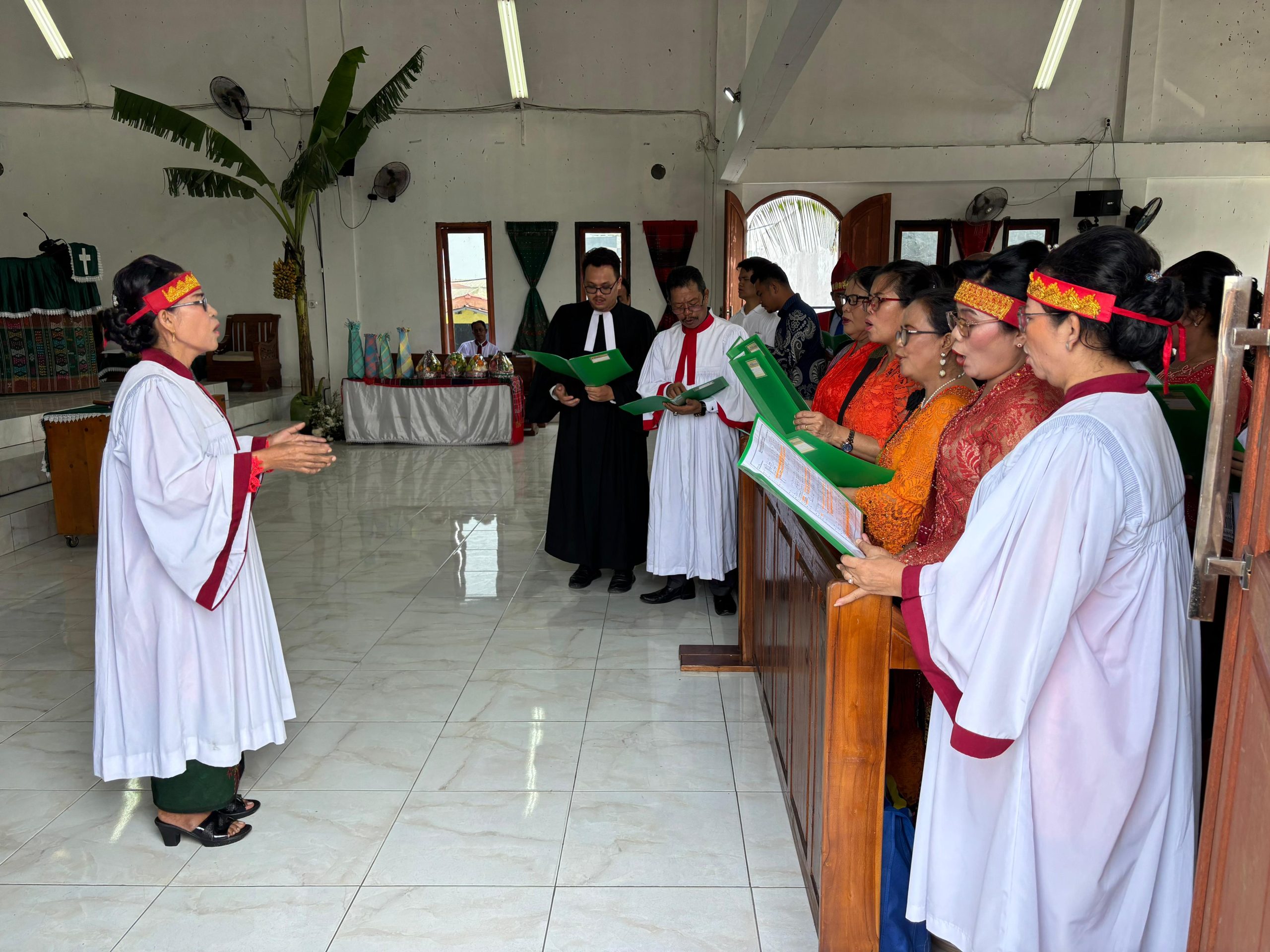 Praeses HKBP Distrik VIII DKI Jakarta, Pdt. Oloan Nainggolan, S.Th., memimpin ibadah Pesta Gotilon dan Penggalangan Dana Pembangunan HKBP Dadap Kosambi Resort HKBP Kamal Raya, Minggu (5/10/2025). Dalam acara ini, praeses didampingi Pdt. Dr. Anna Vera Ch. Pangaribuan sebagai Pendeta Resort Kamal Raya, serta pendeta fungsional, Pdt. Geovani Tuahman Siregar S.Th.