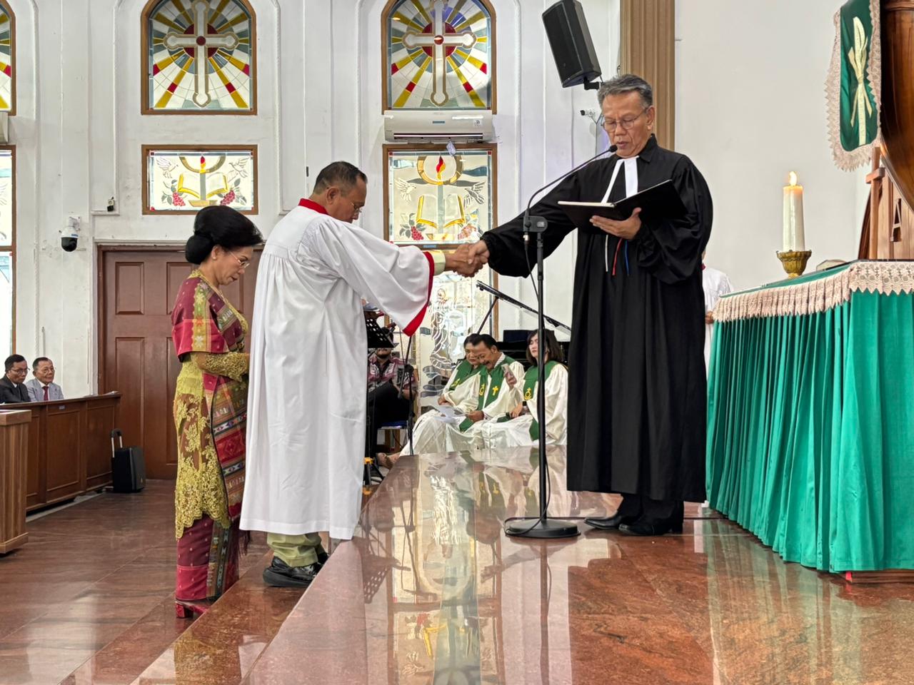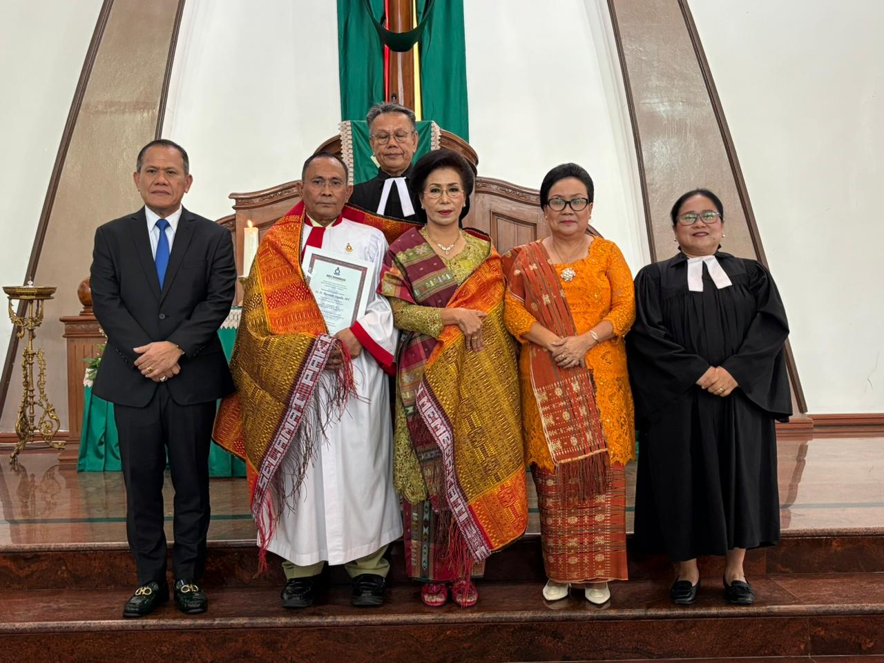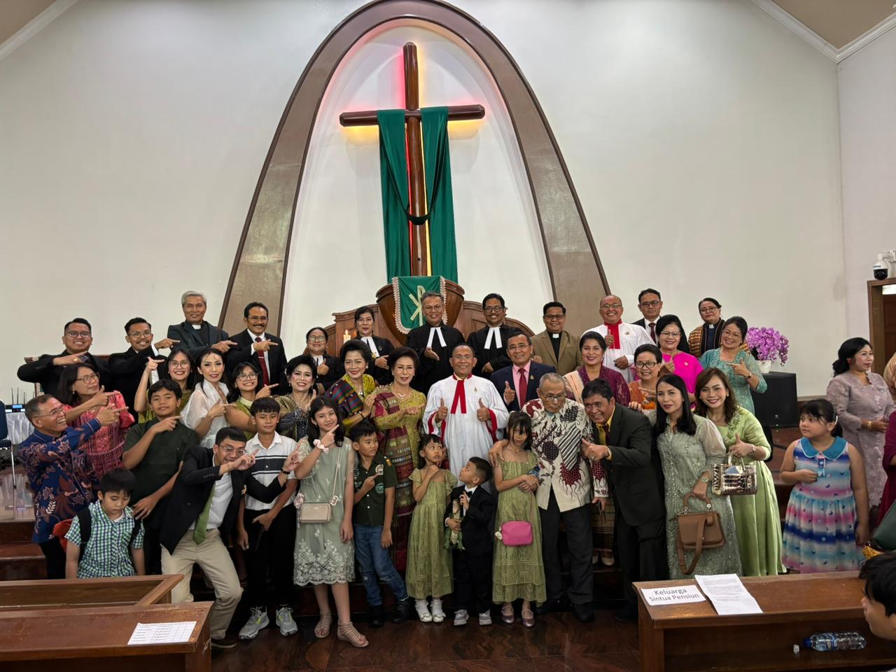 Praeses HKBP Distrik VIII DKI Jakarta, Pdt. Oloan Nainggolan, S.Th., bersama Parhalado HKBP Resort Jatiwaringin pada Ibadah Minggu (16/11/2025).