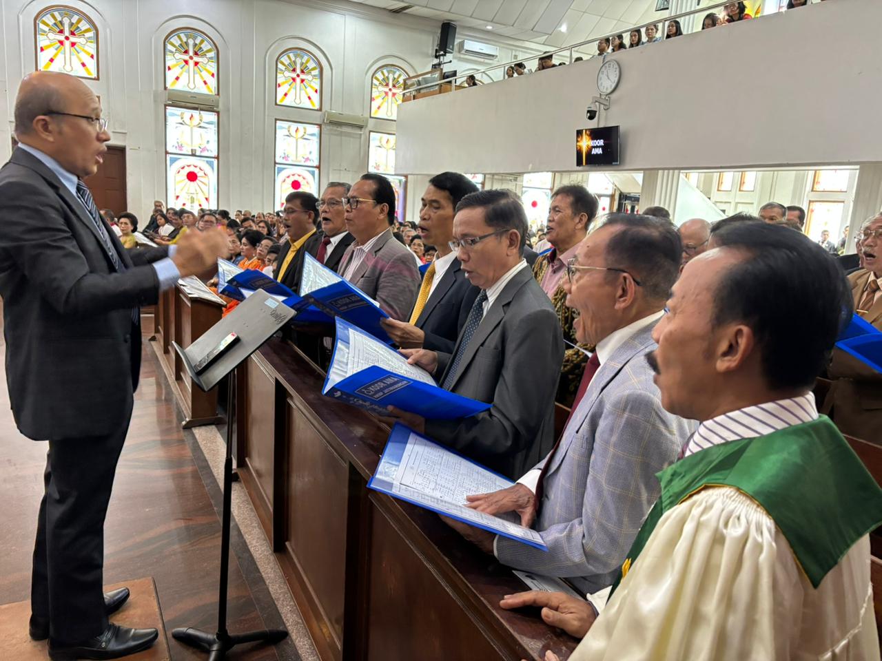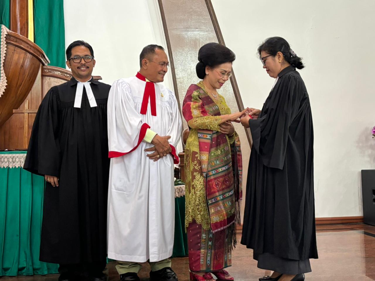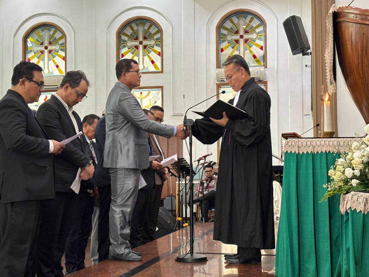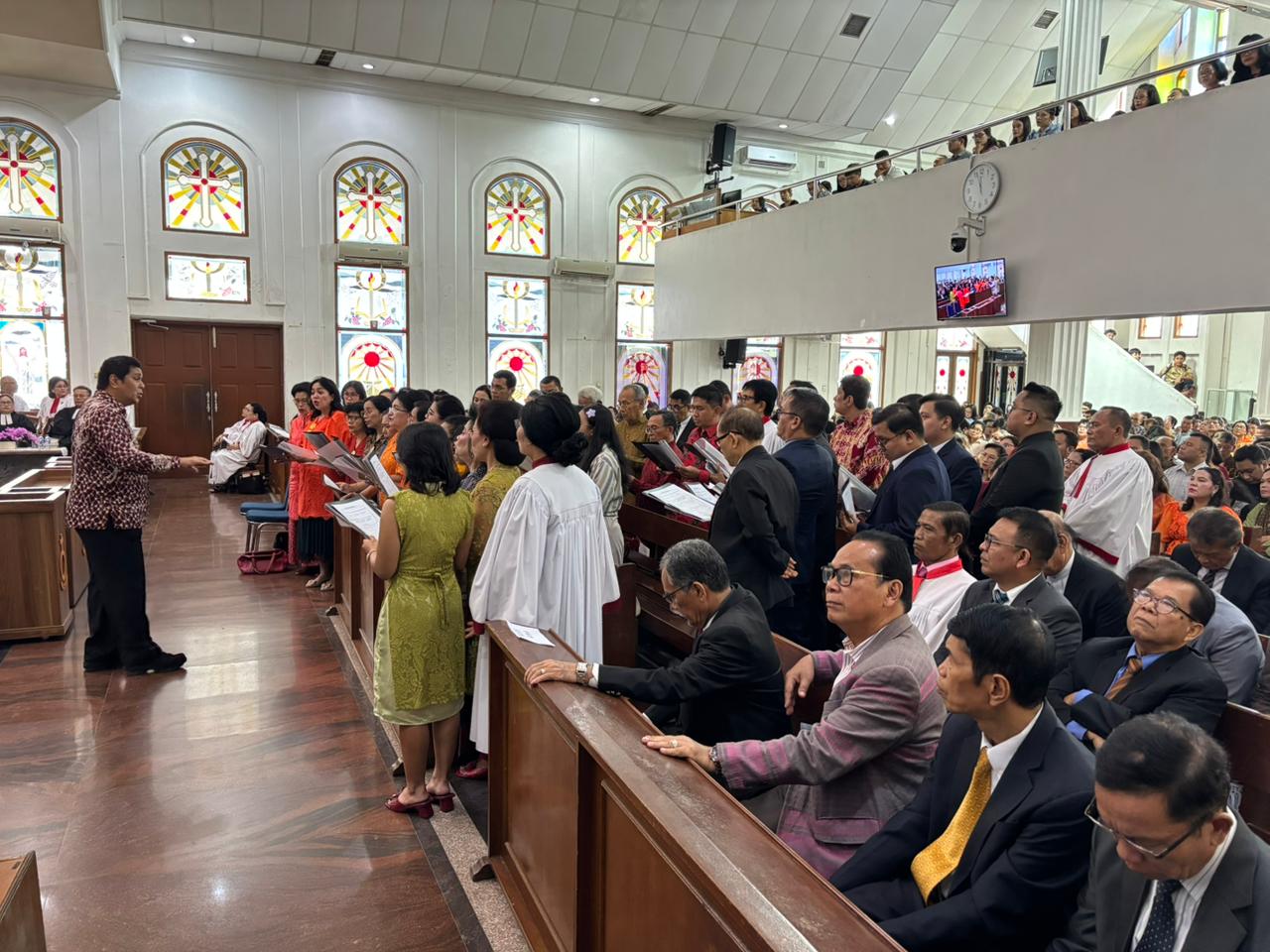 Praeses HKBP Distrik VIII DKI Jakarta, Pdt. Oloan Nainggolan, S.Th., bersama Parhalado HKBP Resort Jatiwaringin pada Ibadah Minggu (16/11/2025).