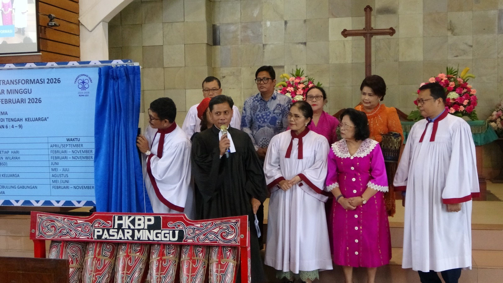 Praeses HKBP Distrik VIII DKI Jakarta, Pdt. Oloan Nainggolan, S.Th., bersama Parhalado HKBP Resort Jatiwaringin pada Ibadah Minggu (16/11/2025).
