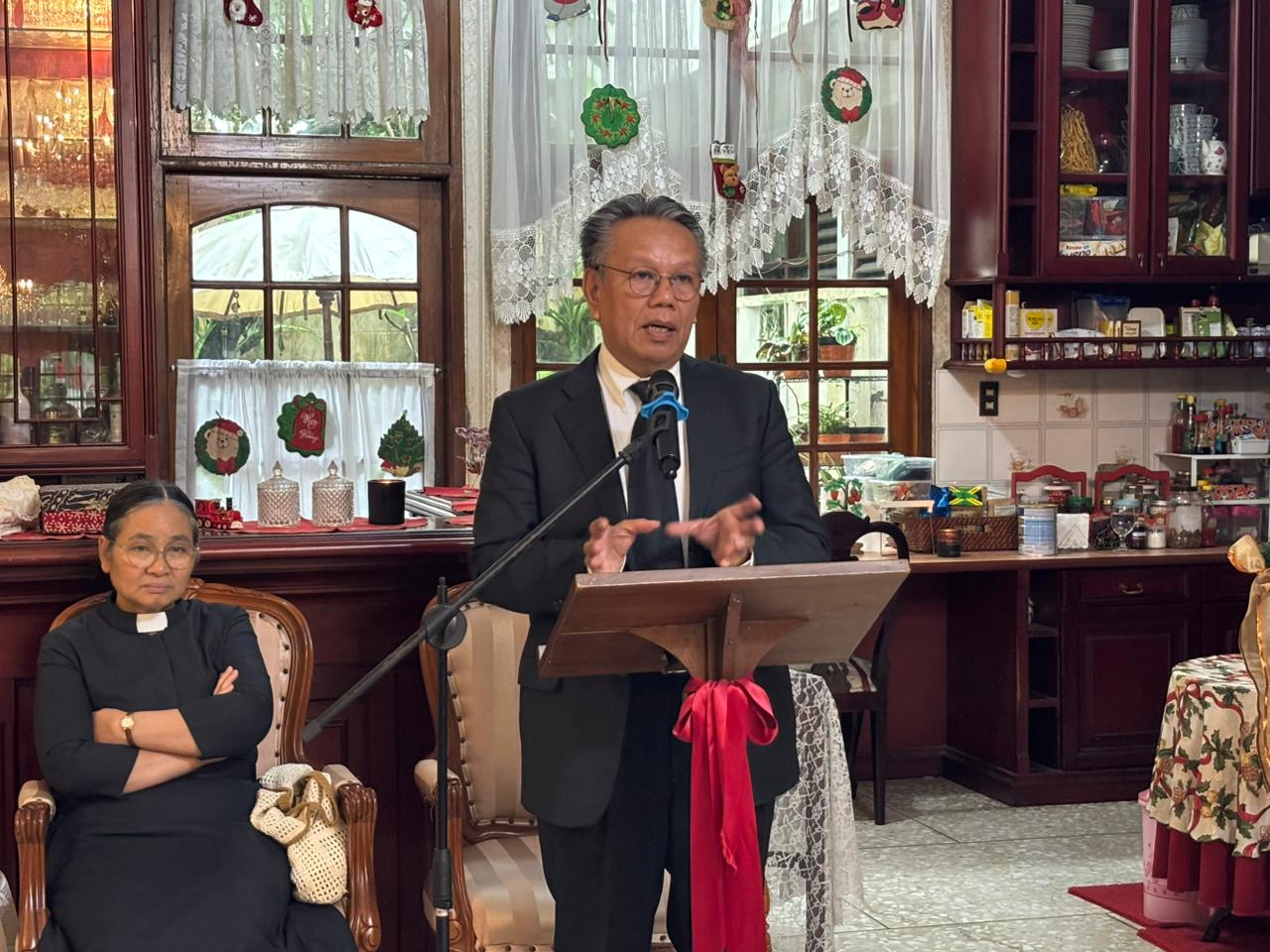 Praeses HKBP Distrik VIII DKI Jakarta, Pdt. Oloan Nainggolan, S.Th., hadir dan layani bonataon Himpunan Darma Kasih di kediaman Bpk. Soy. Pardede dan Ny. Duma boru Pardede di jln. Sutan Syahrir no. 25, Jakarta Pusat, Senin, 19 Januari 2026, pukul 10:00 WIB.