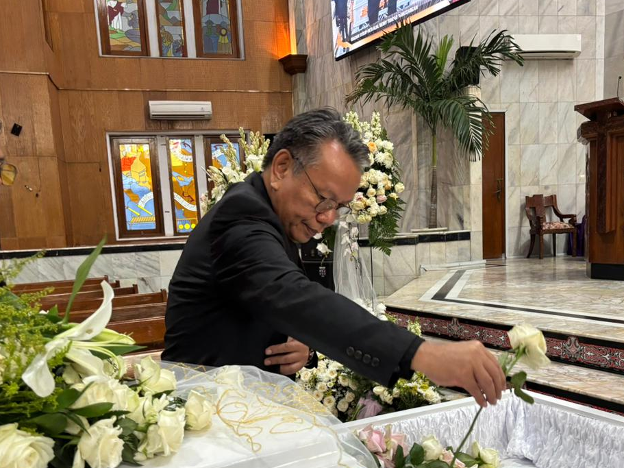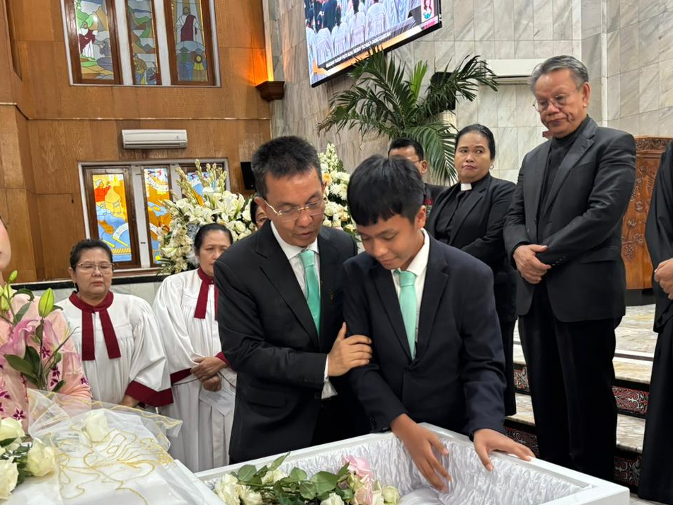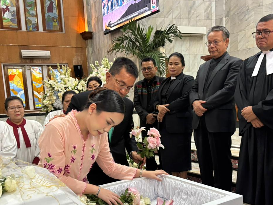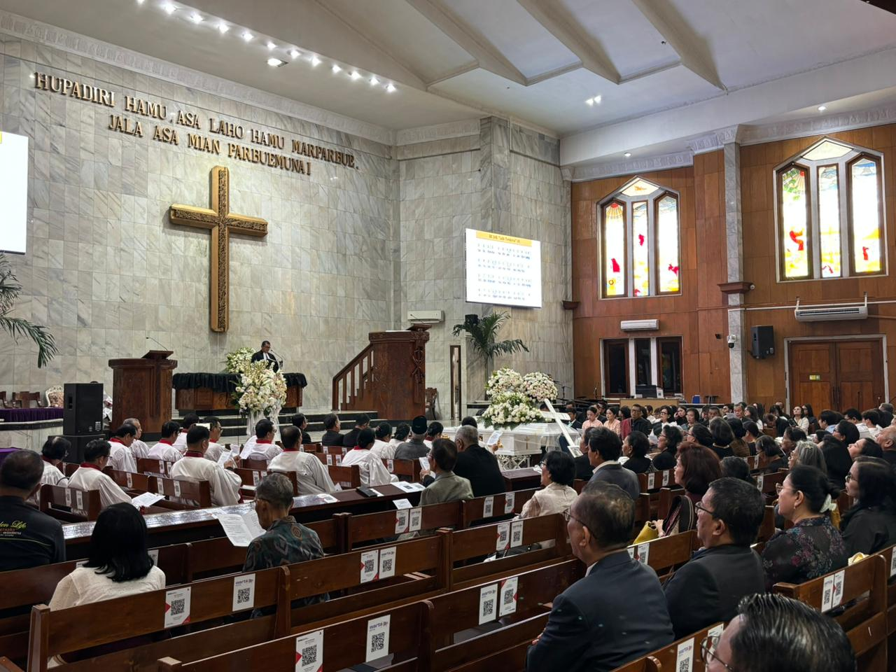 Jakarta, Selasa (31/3/2026) – Praeses HKBP Distrik VIII DKI Jakarta, Pdt. Oloan Nainggolan, menghadiri ibadah penutupan peti jenazah Mendiang Reiny Tumiar Panggabean yang dilaksanakan di Gedung Gereja HKBP Rawamangun.